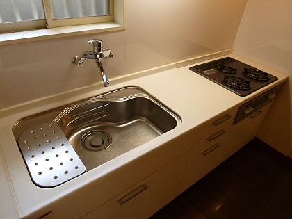 キッチンは1口のガスコンロになり調理スペースもあるのでお料理もはかどります