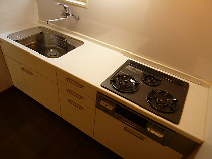 キッチンが3口のシステムキッチンです