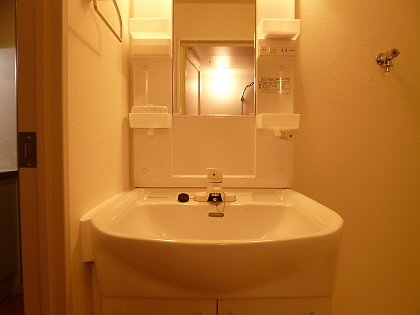 独立洗面台もピカピカ顔を洗うのが楽しみ