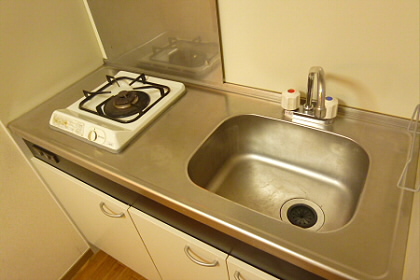 キッチンは1口のガスコンロですので炒め物もしっかりすることができます