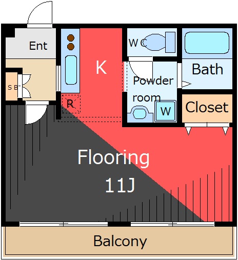 こちらの物件は間取りが1Kになりますが10帖あるので広々しています