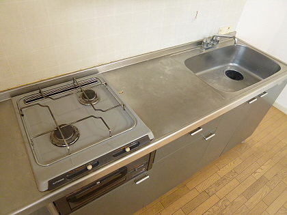 キッチンも2口ガスコンロ対応でシンクも広めの作り