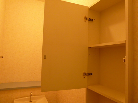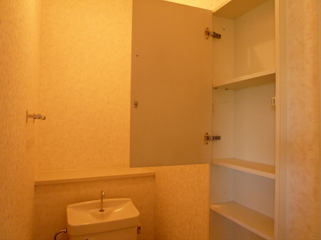 トイレは上に収納付きなのでトイレットペーパーなどのストックが置けます