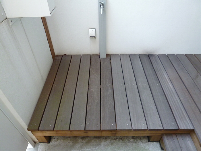 玄関はドアを開けたらウッドデッキになっていて、お洒落な造りとなっています!