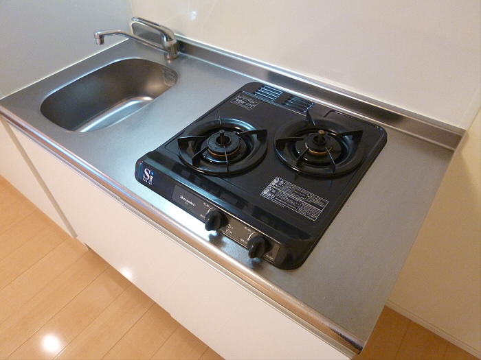 キッチンもガスコンロが二口付いていて、とてもお料理がしやすいです♪