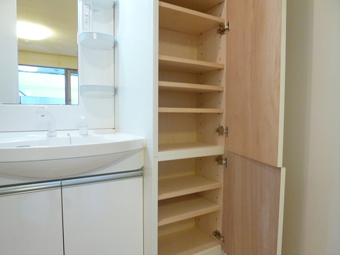 脱衣所には、室内洗濯機置場と独立洗面台もありますので