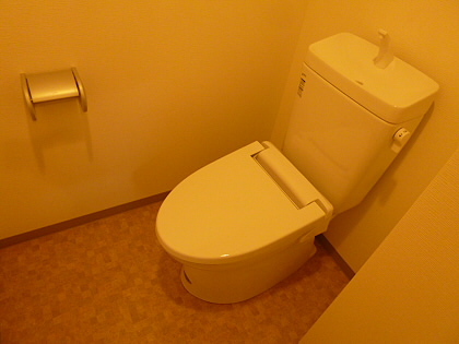 トイレはベージュの壁紙がおしゃれで清潔感がありますね♪