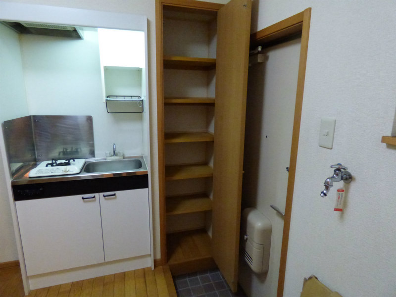 洗濯機も室内に置けますし、一口ガスコンロも付いてますので、
