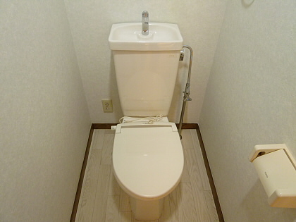 トイレはベージュの壁紙がおしゃれで清潔感がありますね♪
