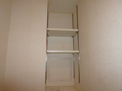 トイレも清潔感があり、高さを変えられる棚が付いているので