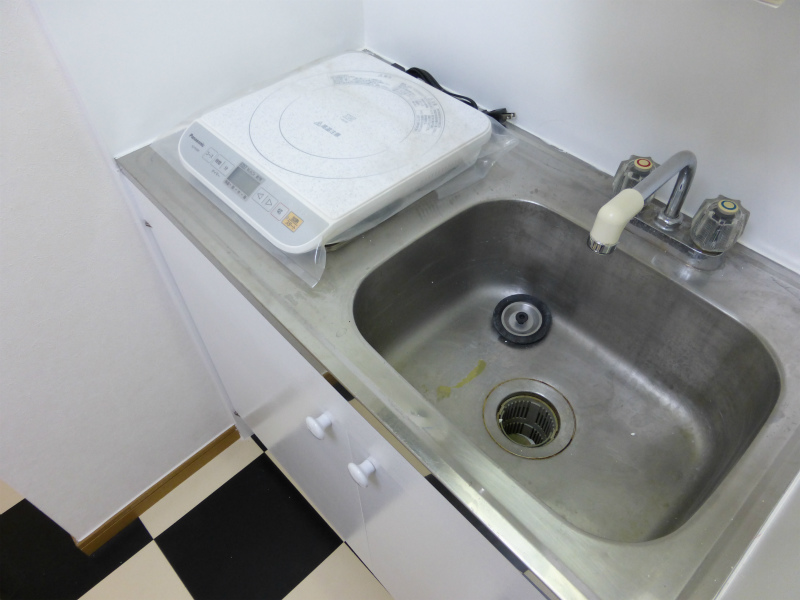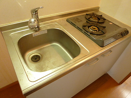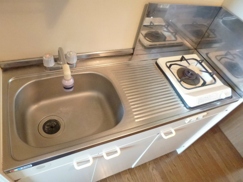 キッチンは1口のガスコンロですのですぐにお料理を始めて頂けると思います。