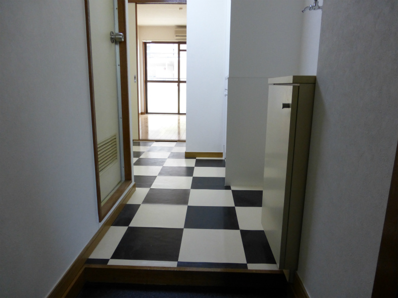 玄関を開けると真っ先に目に入る床! 白黒模様でおしゃれ過ぎます~☆