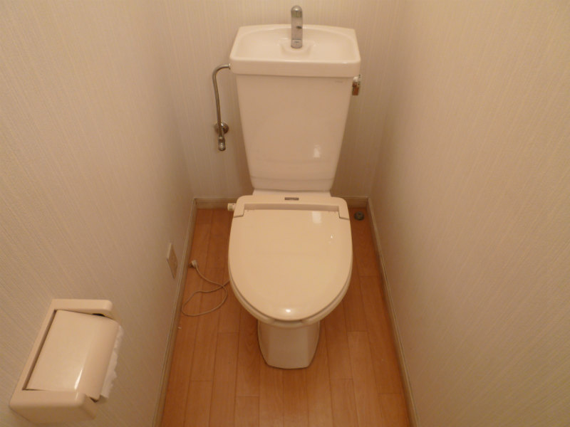 トイレはベージュの壁紙がおしゃれで清潔感がありますね♪