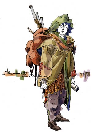 旅人が寒がってコートにかじりついてました。