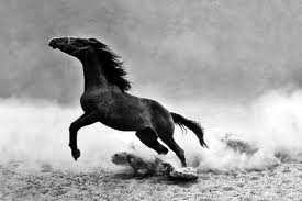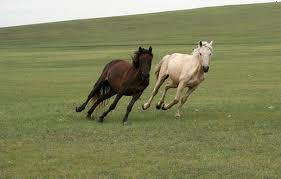 大草原を馬に乗って