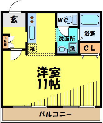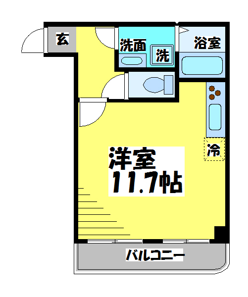 専有面積:37㎡の1Kです。